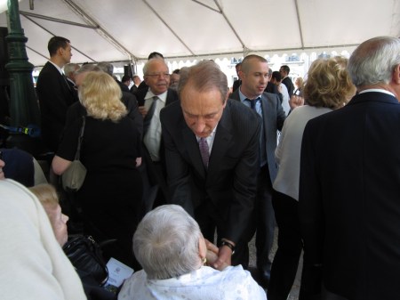Poignée de main de Bertrand Delanoé faisant éloge pour ses nombreux passages à la télévision (15 et 16 juillet 2012)