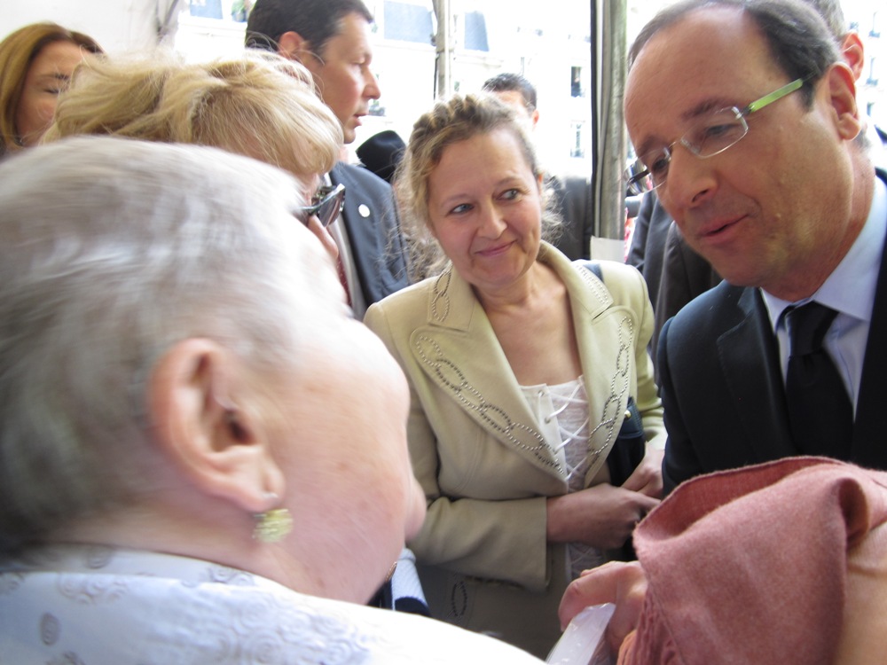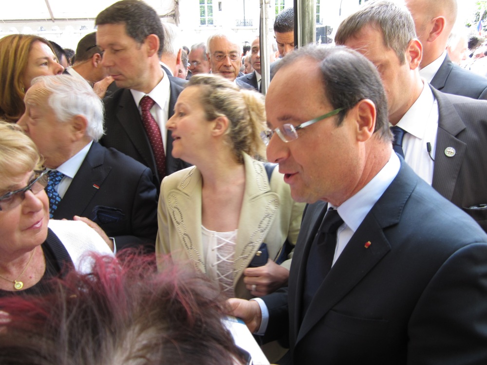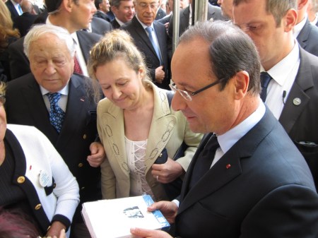 Le président François Hollande vient à la rencontre des déportés et dit à Sarah qu’il a vu un article sur elle dans le journal Libération