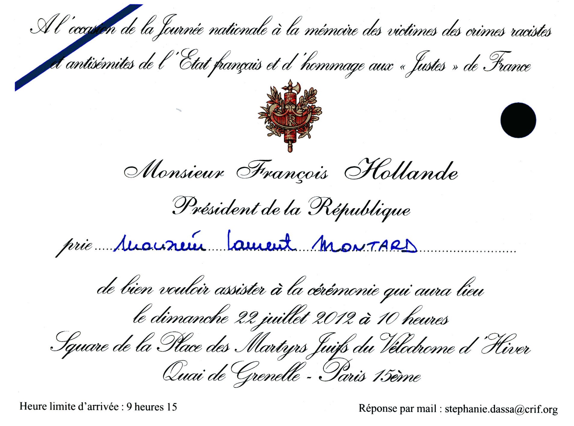 Voilà tout est dans ce carton d’invitation où nous avons pu assister à cette cérémonie qui s’est déroulée avec sobriété et plein d’émotions.