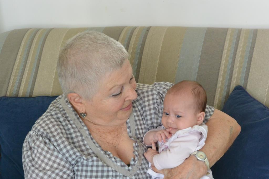 Pour ce mois de juin, voici à nouveau Sarah accompagnée de son petit-fils Fabien et son arrière petite fille Flora de 2 mois et demi.